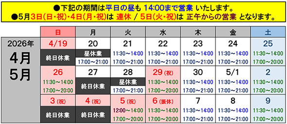 ■営業カレンダー